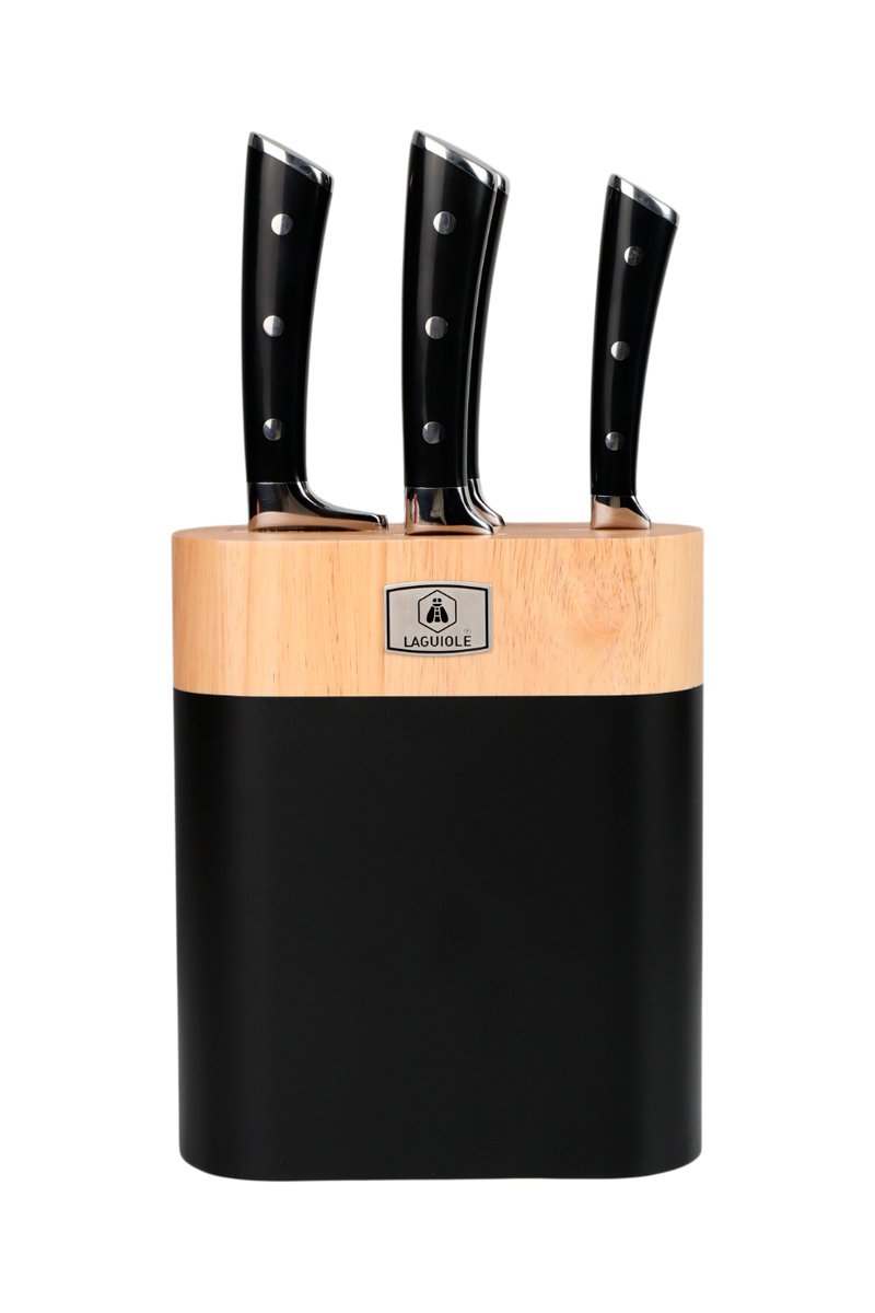 4 facas de aço inoxidável 3CR13 e bloco de arrumação em madeira de hévea