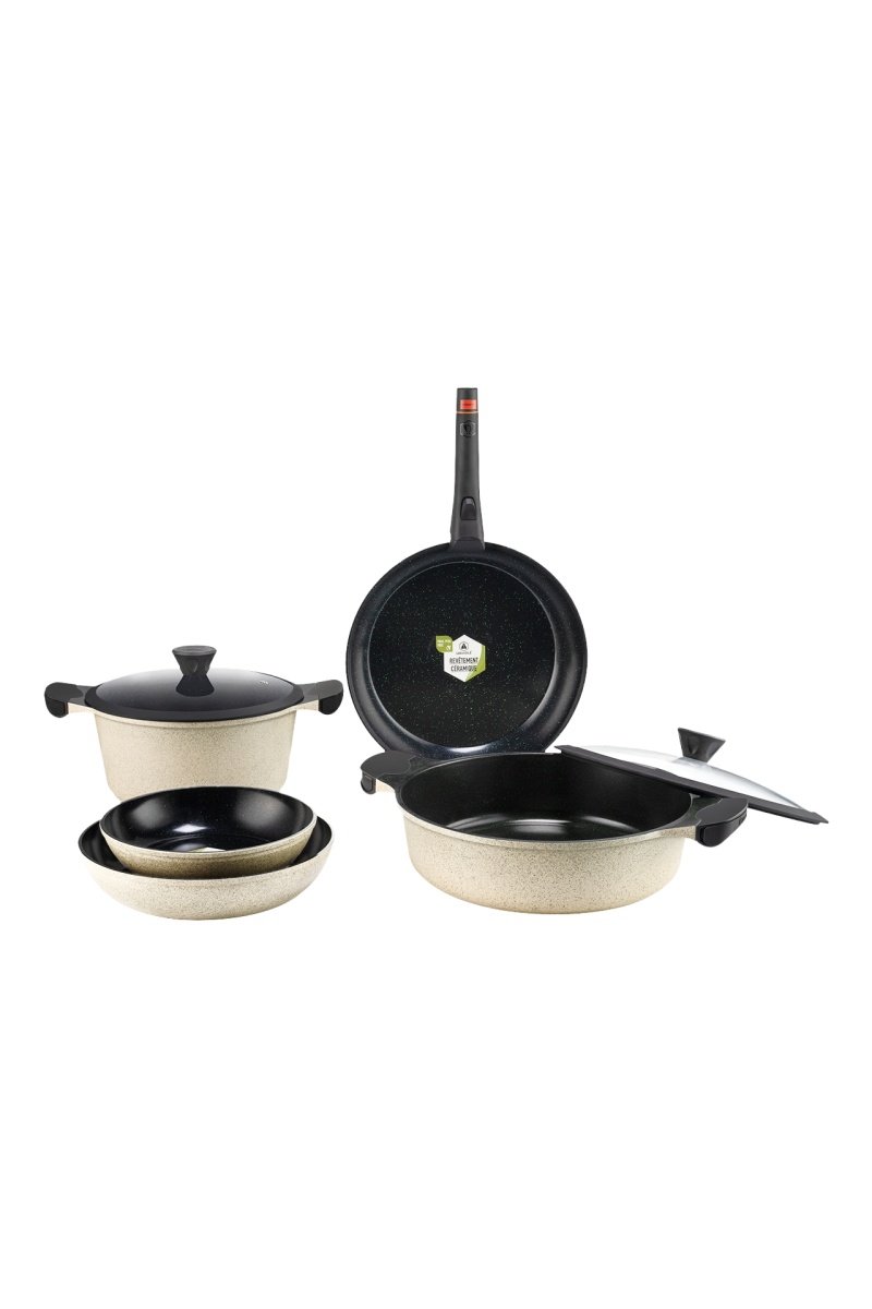 Revestimento antiaderente em cerâmica efeito pedra, sem PFOA, sem PFAS para uma sustentabilidade ecológica.
