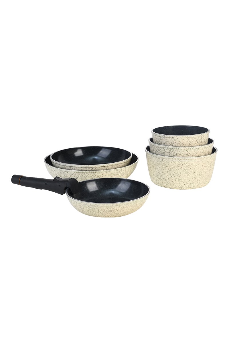 Revestimento antiaderente cerâmico com efeito de pedra, sem PFOA e sem PFAS para uma sustentabilidade ecológica.
