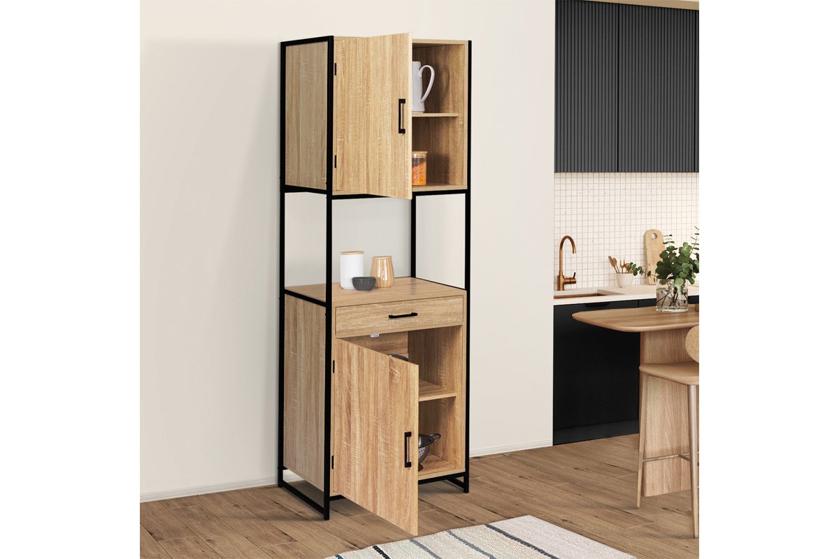 Móvel de porcelana industrial de 2 portas Memphis - Imitação de madeira e preto