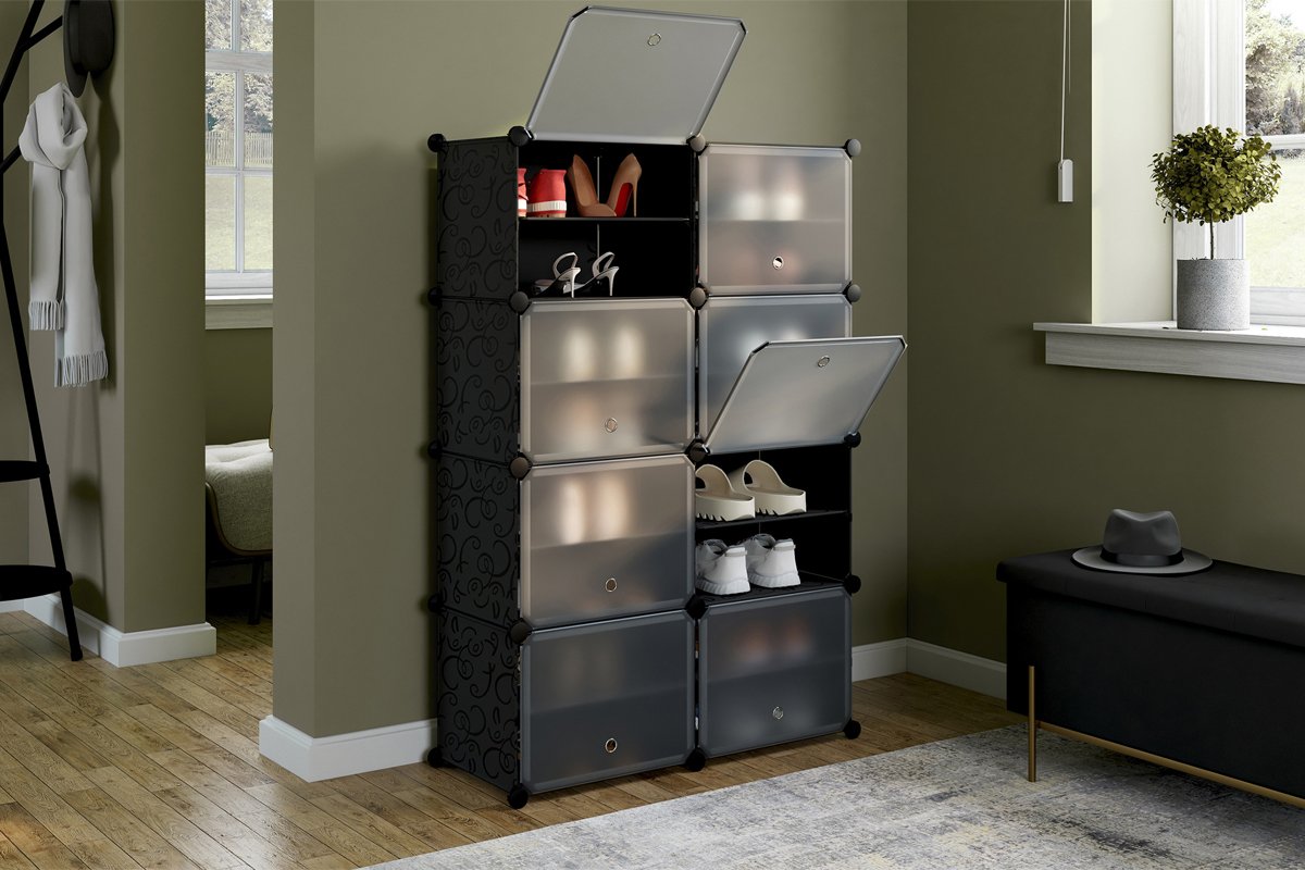 Descubra a sapateira em forma de cubo, destinada a satisfazer todas as suas necessidades de arrumação e a dar um toque de sofisticação ao seu espaço.