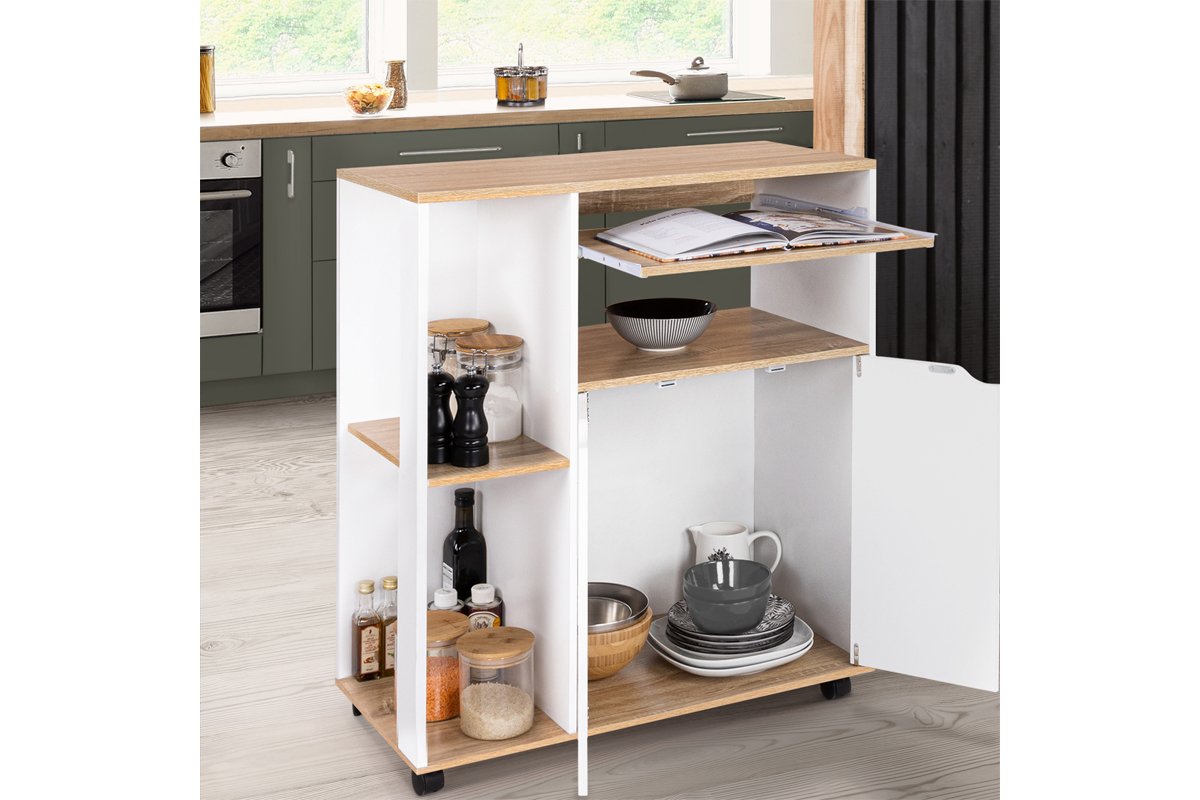 Carrinho de cozinha com rodas - Branco e imitação de madeira