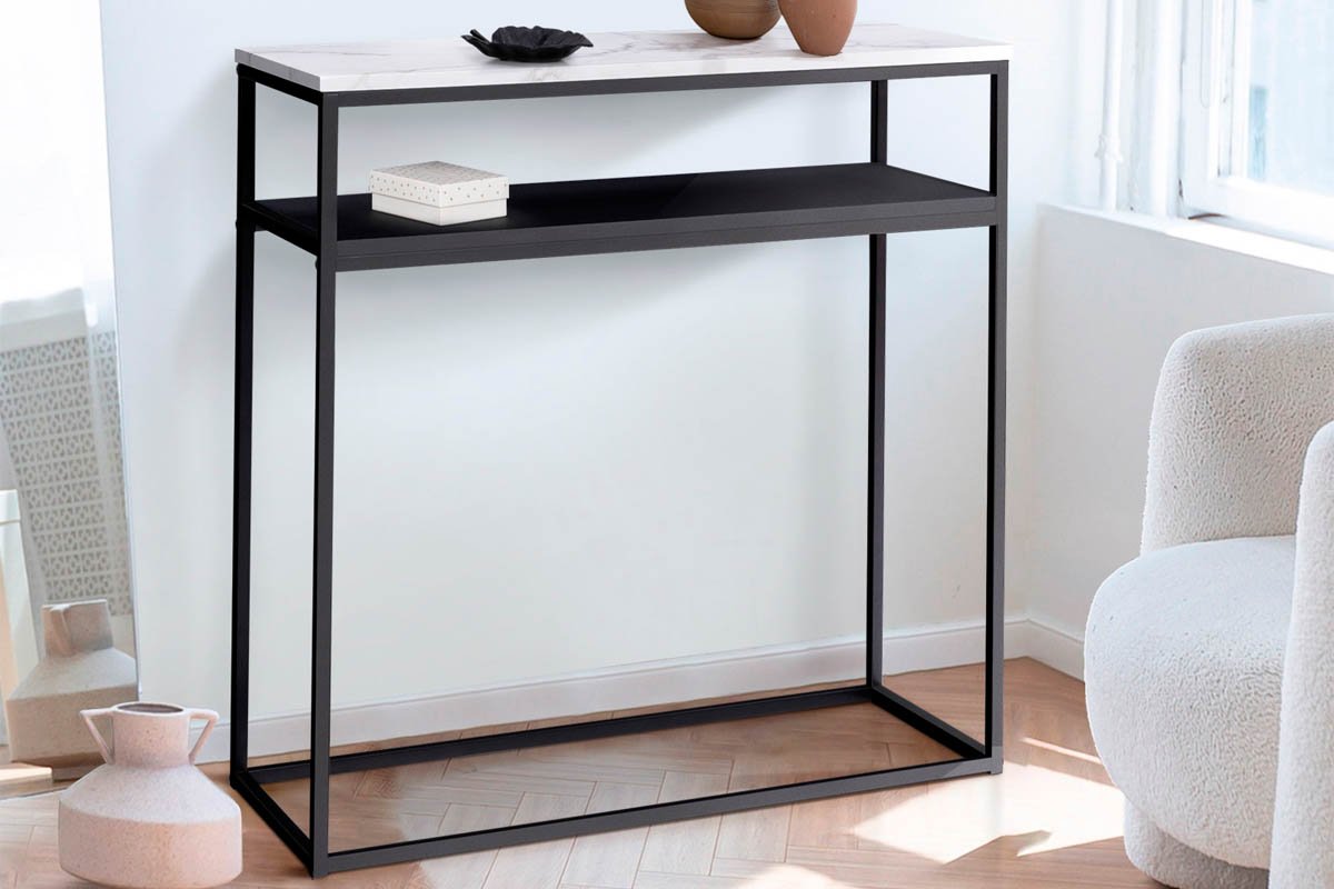 Consola duplo tampo efeito mármore.