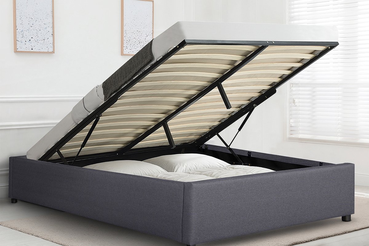 Sommier com 24 ripas em madeira com pistões de elevação incluídos.