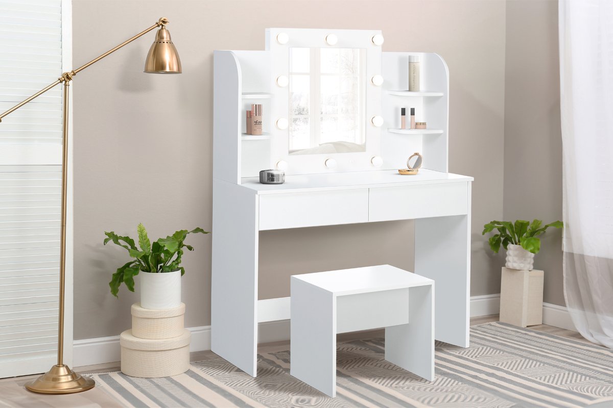 Toucador 2 gavetas e banco Zita - 108 x 41 x 40 cm / 48 x 40,5 x 29,5 cm