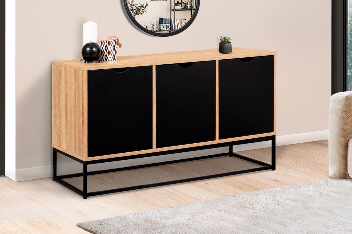Aparador baixo 3 portas - Imitação de madeira e preto