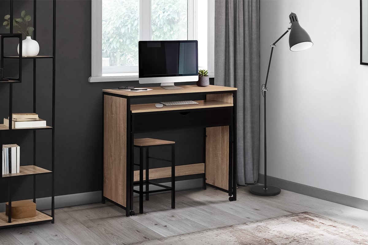 Secretária extensível Manhattan - Preto e imitação de madeira