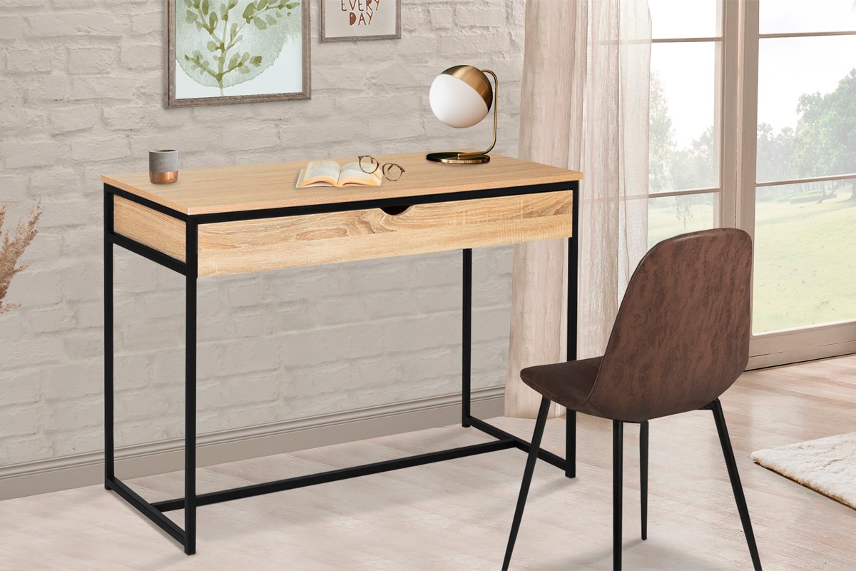 Secretária 1 gaveta Manufacture - Imitação de madeira e preto
