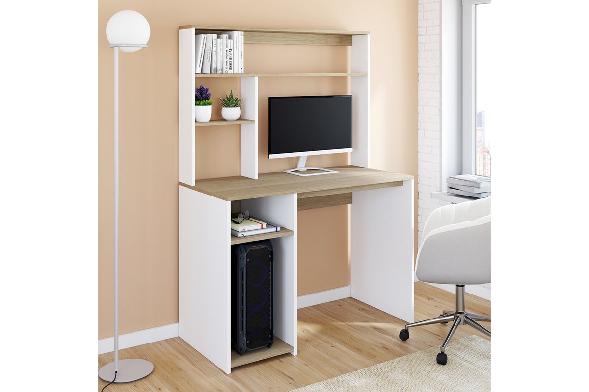 Secretária com prateleiras de arrumação Danny - Branco e castanho
