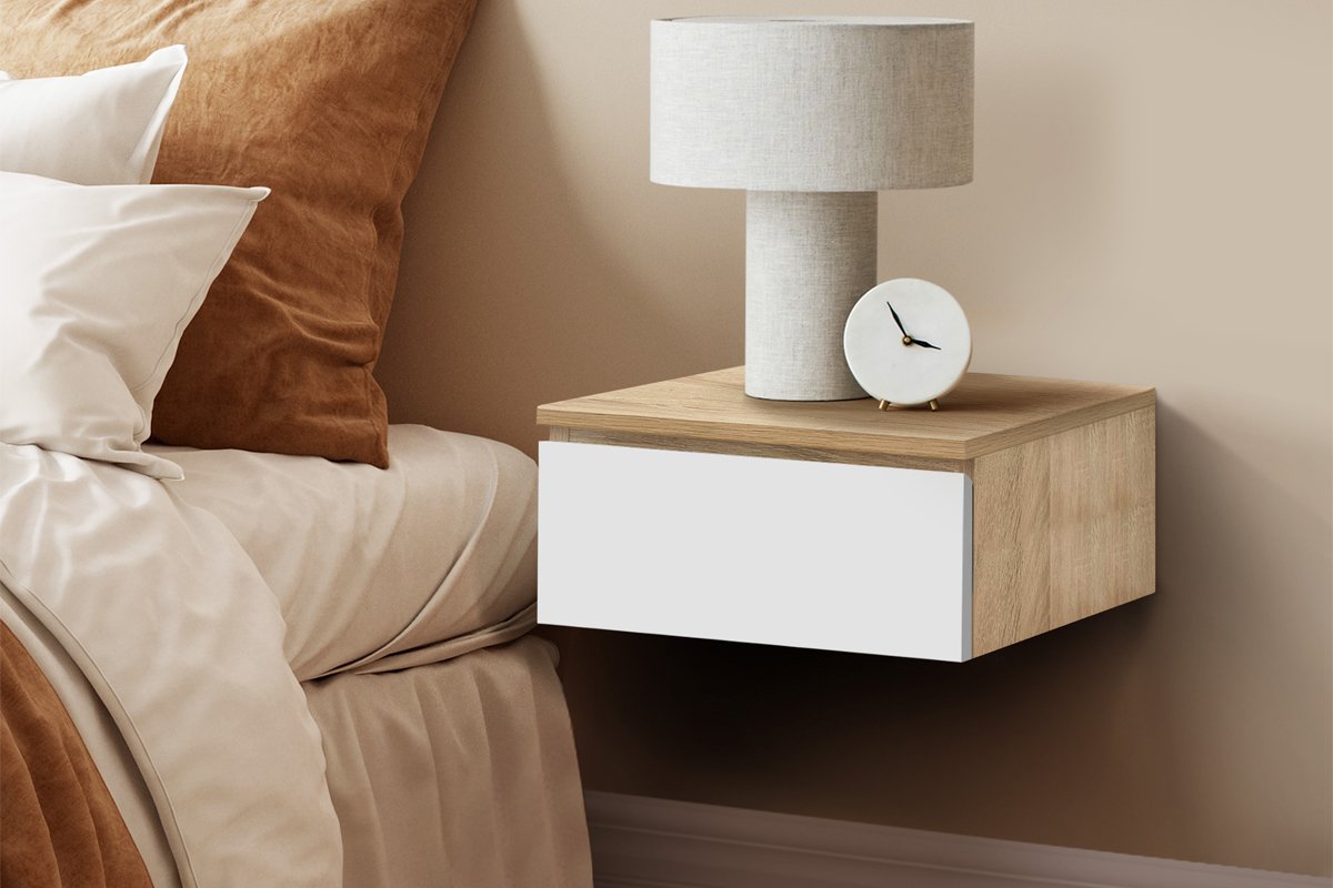 2 mesas de cabeceira suspensas 1 gaveta Tom - 40 x 18 x 30 cm