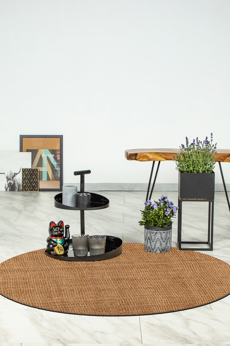 Este tapete é fabricado a partir de fibras vegetais, o seu design combina com todos os estilos de decoração, do contemporâneo ao tradicional.