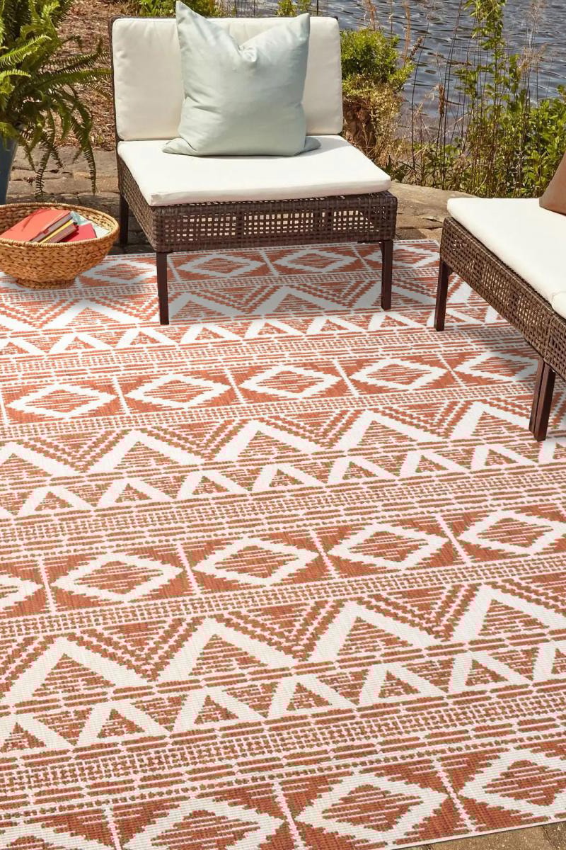 Este tapete kilim, fabricado em polipropileno, é resistente, anti-pó, anti-ácaros e hidrófugo.