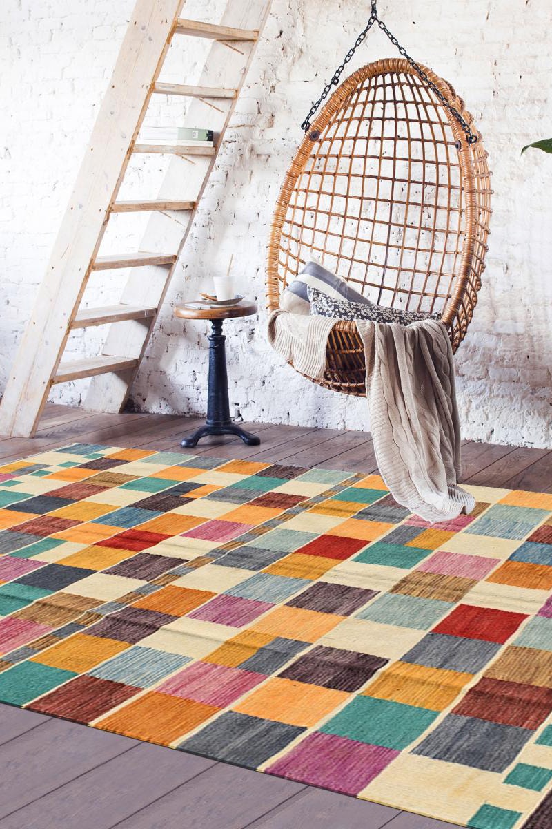 Tapete de tecido à mão. Estampado geométrico.