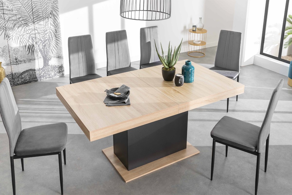 Mesa de jantar extensível Tania - Imitação de madeira e preto