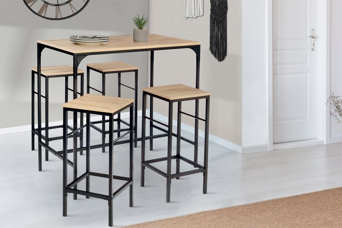 Mesa de bar e 4 bancos de bar Pharell - 100 x 60 x 95 cm e 32 x 32 x 67 cm
