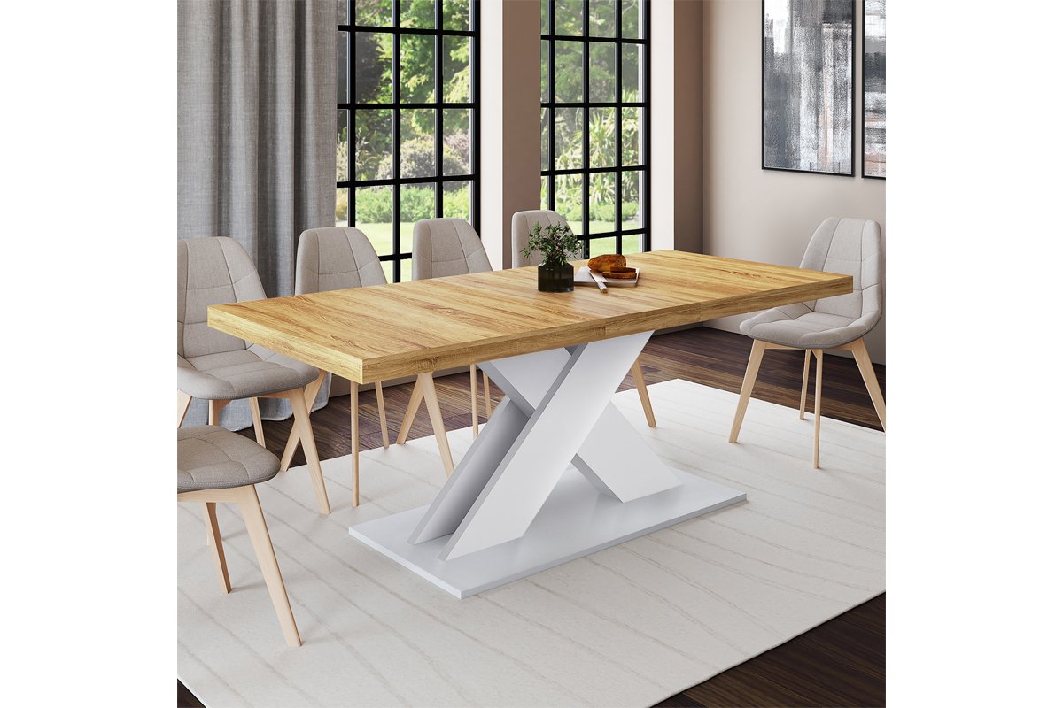 Mesa de jantar extensível Alexia - Imitação madeira e branco