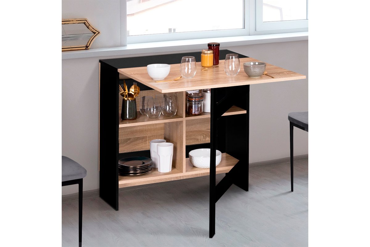 Mesa consola dobrável Edi - Imitação de madeira e preto