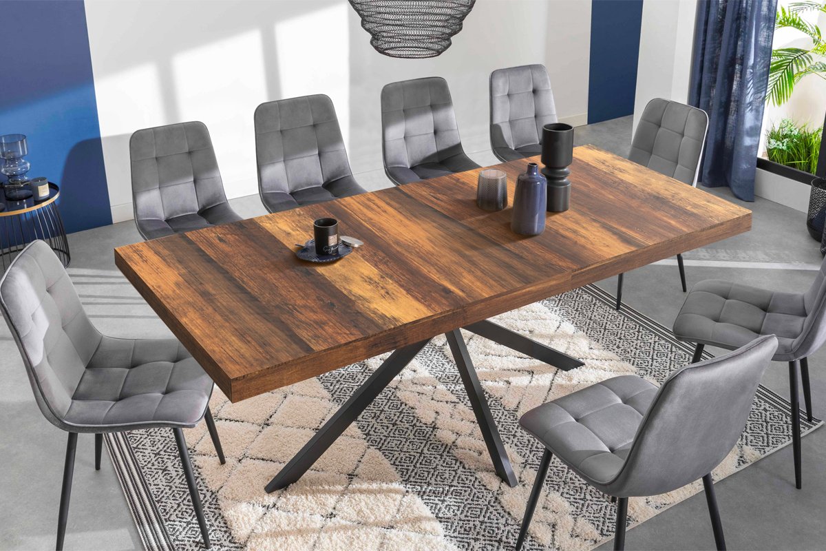 Mesa de jantar extensível Eliza - Imitação de madeira e preto