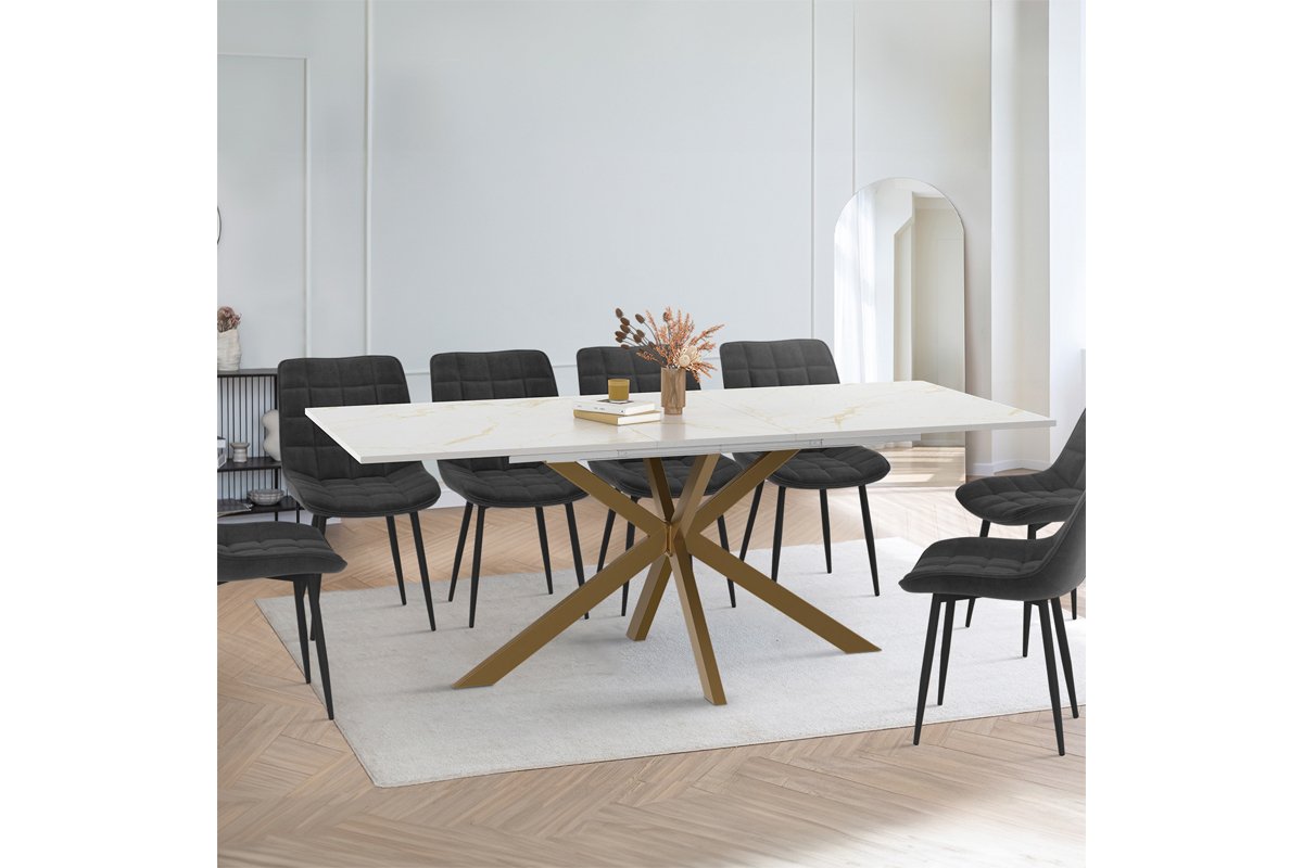 Mesa de jantar extensível Glam - Imitação de mármore e dourado