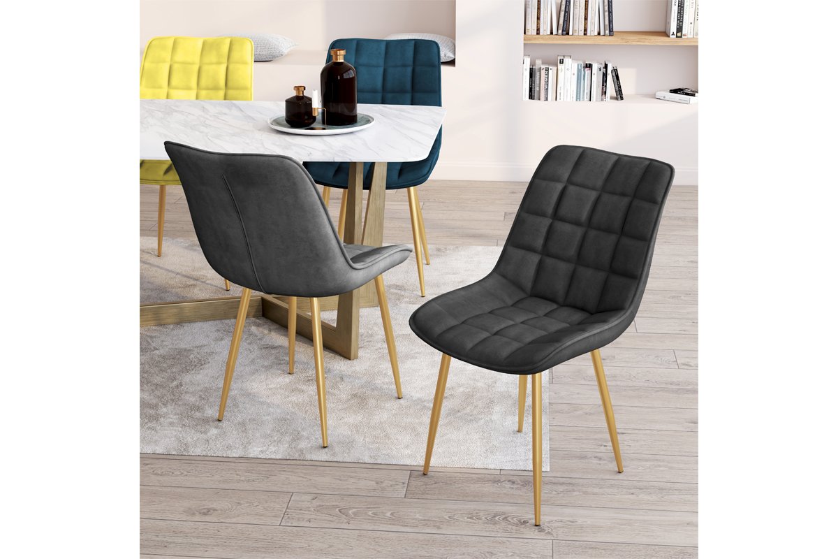 Ideais para se sentar à volta de uma mesa e criar um ambiente acolhedor, estas cadeiras, com as suas linhas simples, vão valorizar o seu interior. Assento de veludo, largo e almofadado garante um conforto absoluto e dá um toque de aconchego à sua sala de jantar.