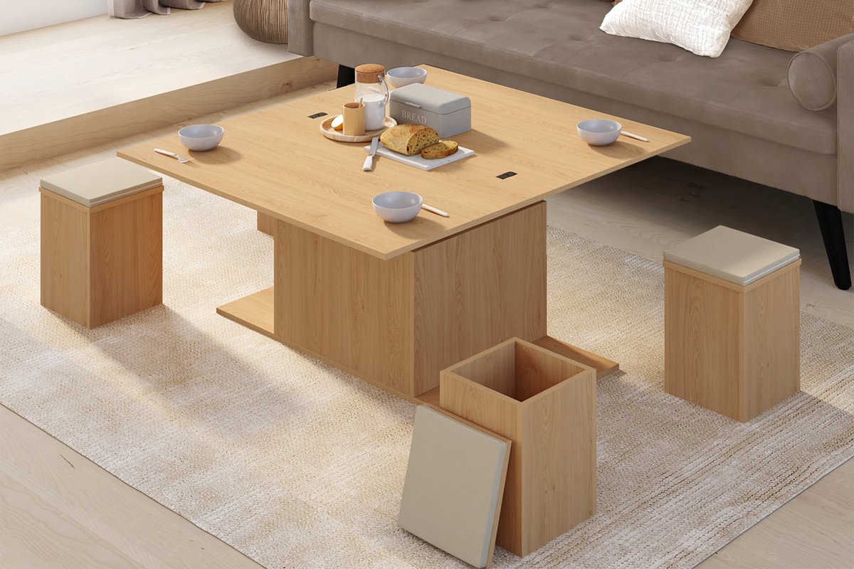Mesa de centro extensível Tania e 4 pufes - 100 x 55/110 x 39/51 cm