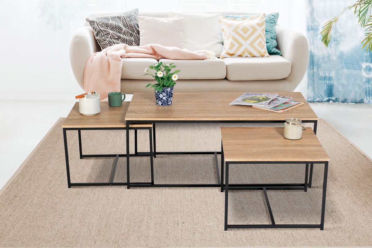 3 mesas encaixáveis Manufacture - Imitação de madeira e preto