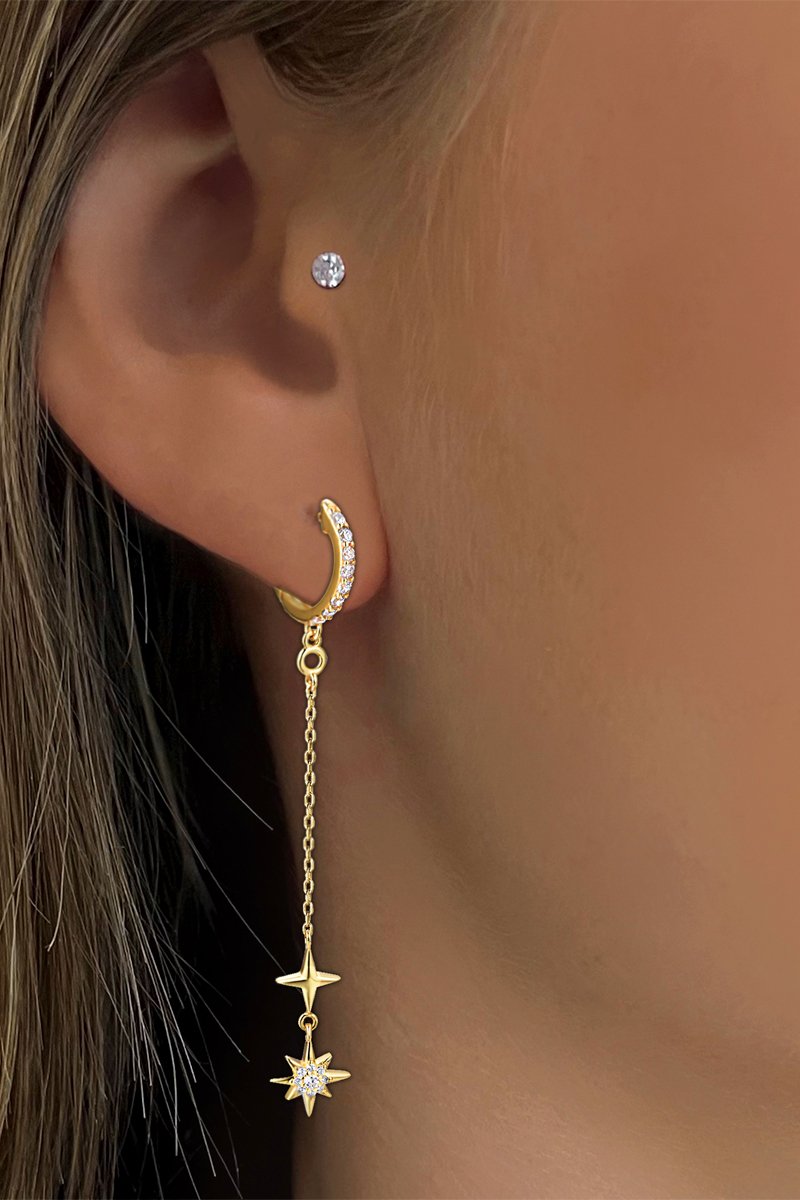 Brincos pendentes folheados a ouro fino amarelo com zircónios.