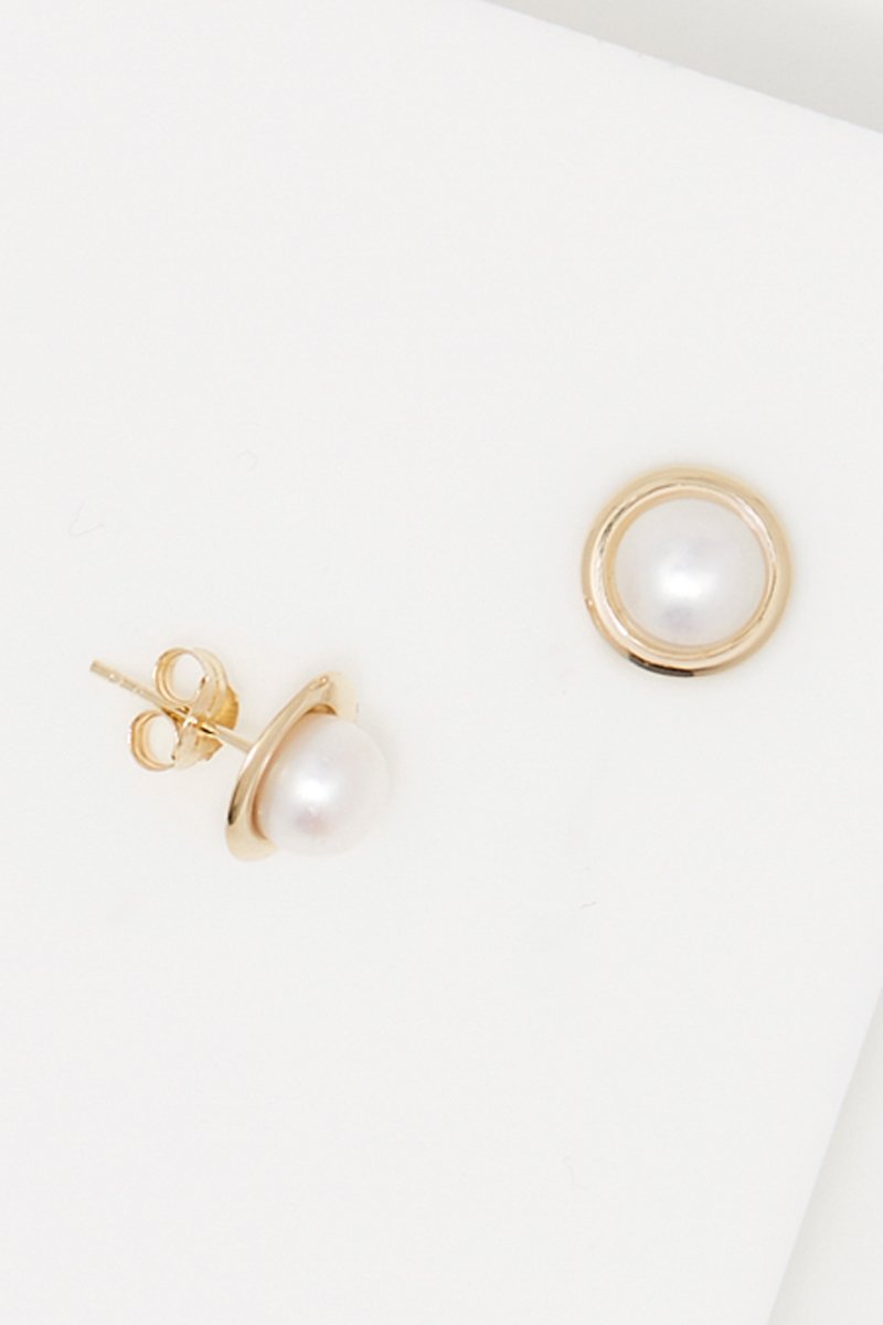 Brincos de ouro amarelo com uma pérola de cultura.