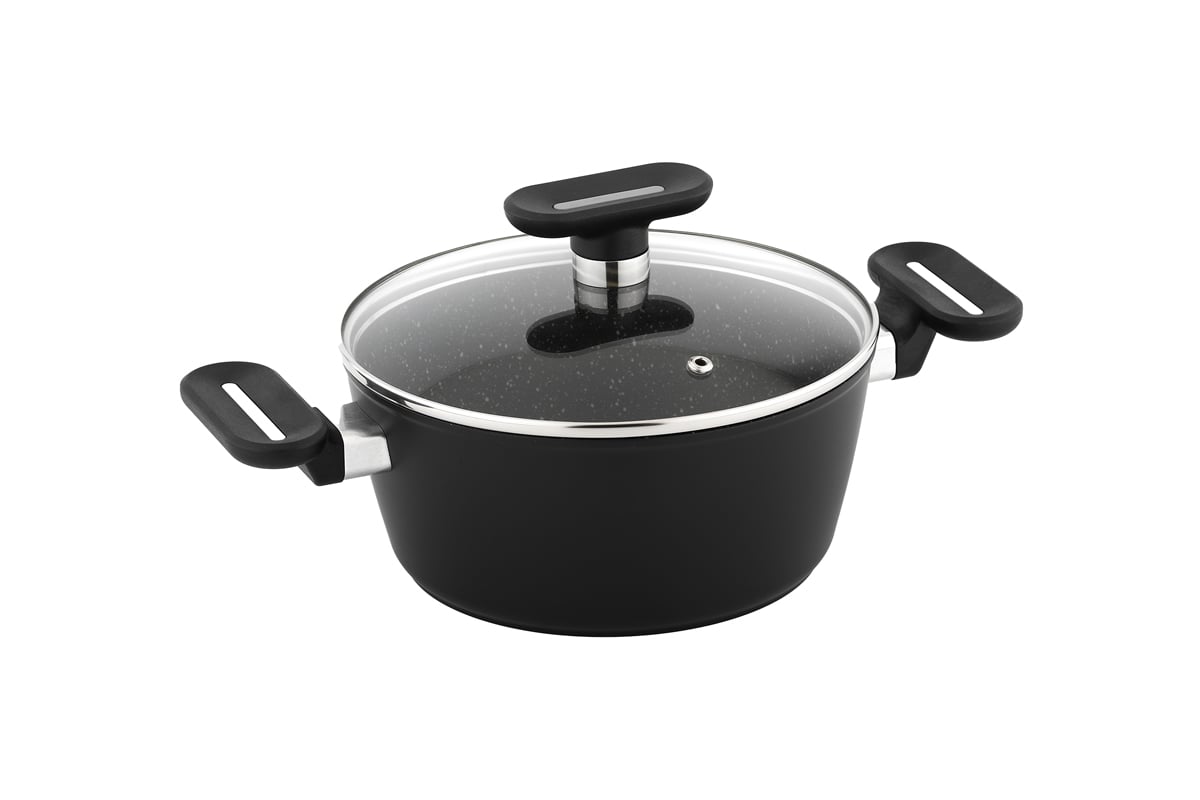 Tampa de vidro e anel de aço inoxidável Corpo em alumínio forjado.