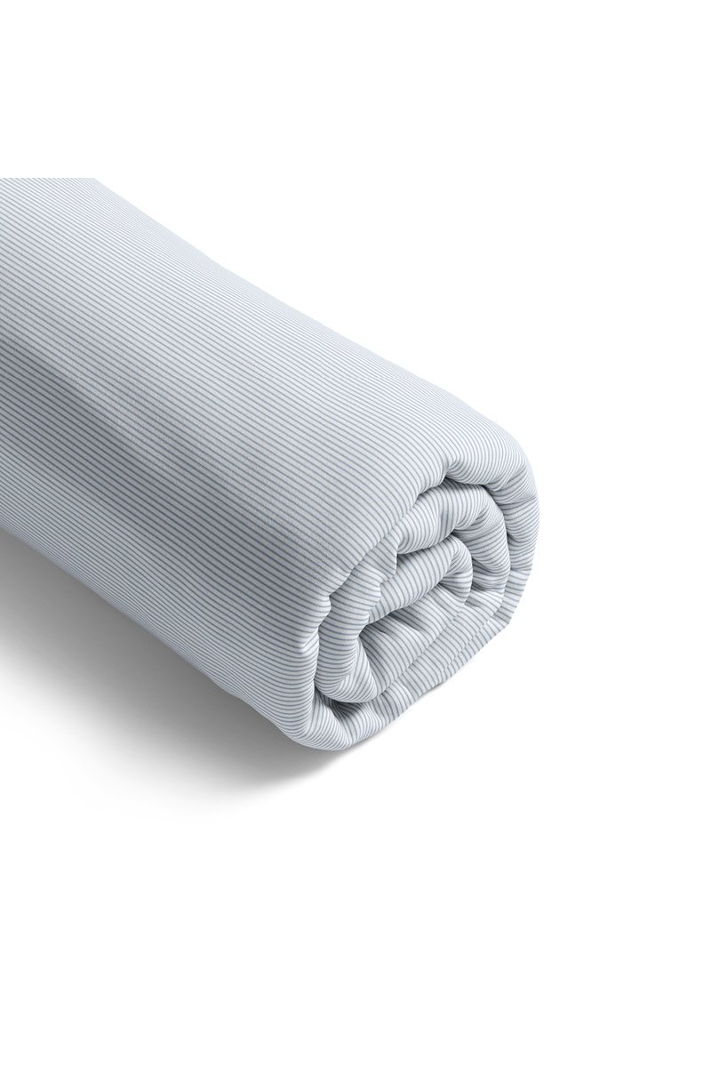 Lençol-capa em cetim de algodão 80 fios/cm² Rayures fines - Azul-claro