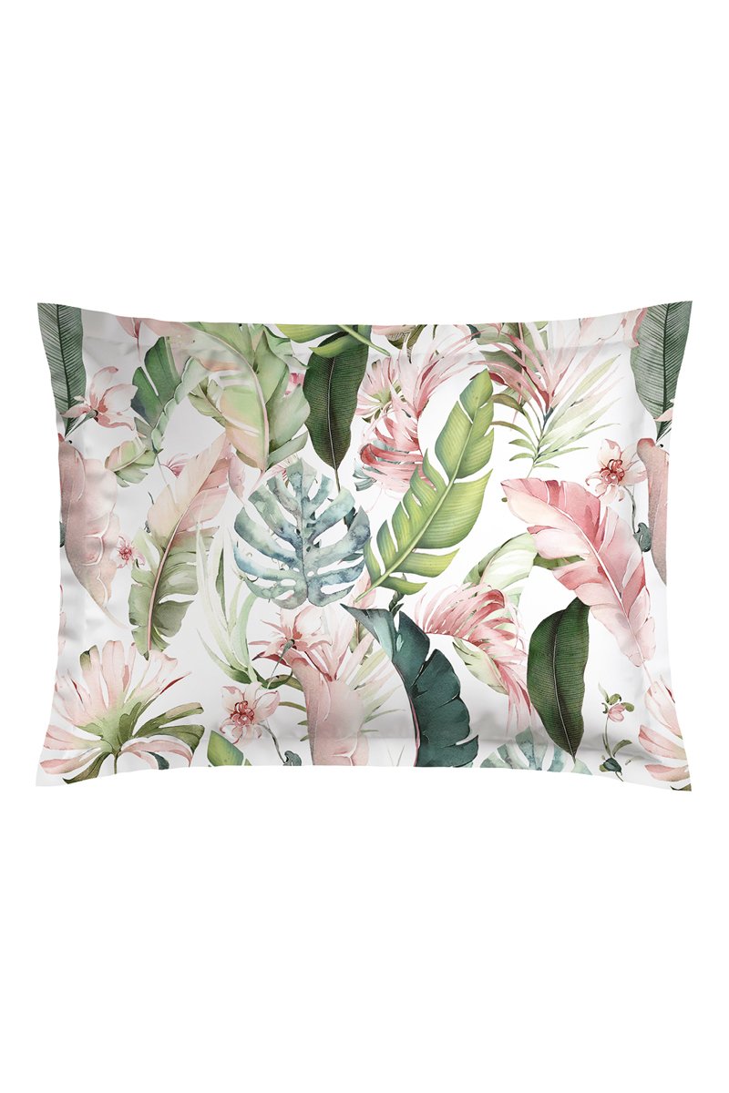 2 fronhas em cetim de algodão 80 fios/cm² Palma - Branco e verde