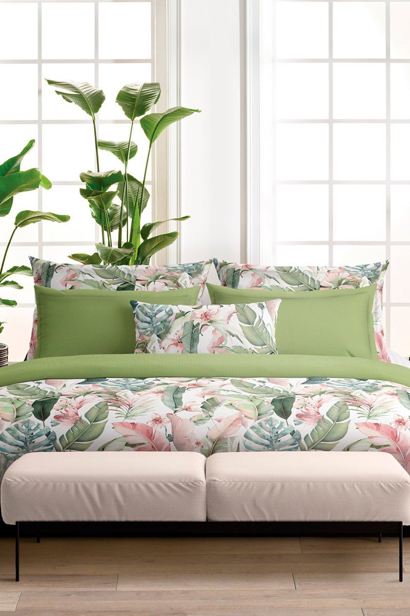 Conjunto de edredão em cetim de algodão 80 fios/cm² Palma - Branco e verde