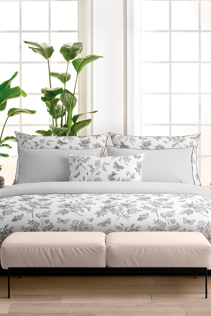 Conjunto de edredão em cetim de algodão 80 fios/cm² Envolée de papillons - Branco