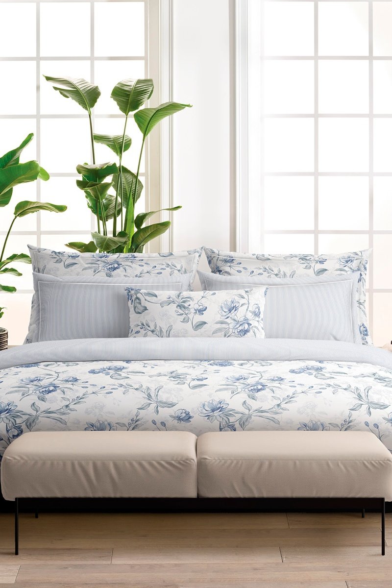 Conjunto de edredão em cetim de algodão 80 fios/cm² Fleurs azurées - Branco