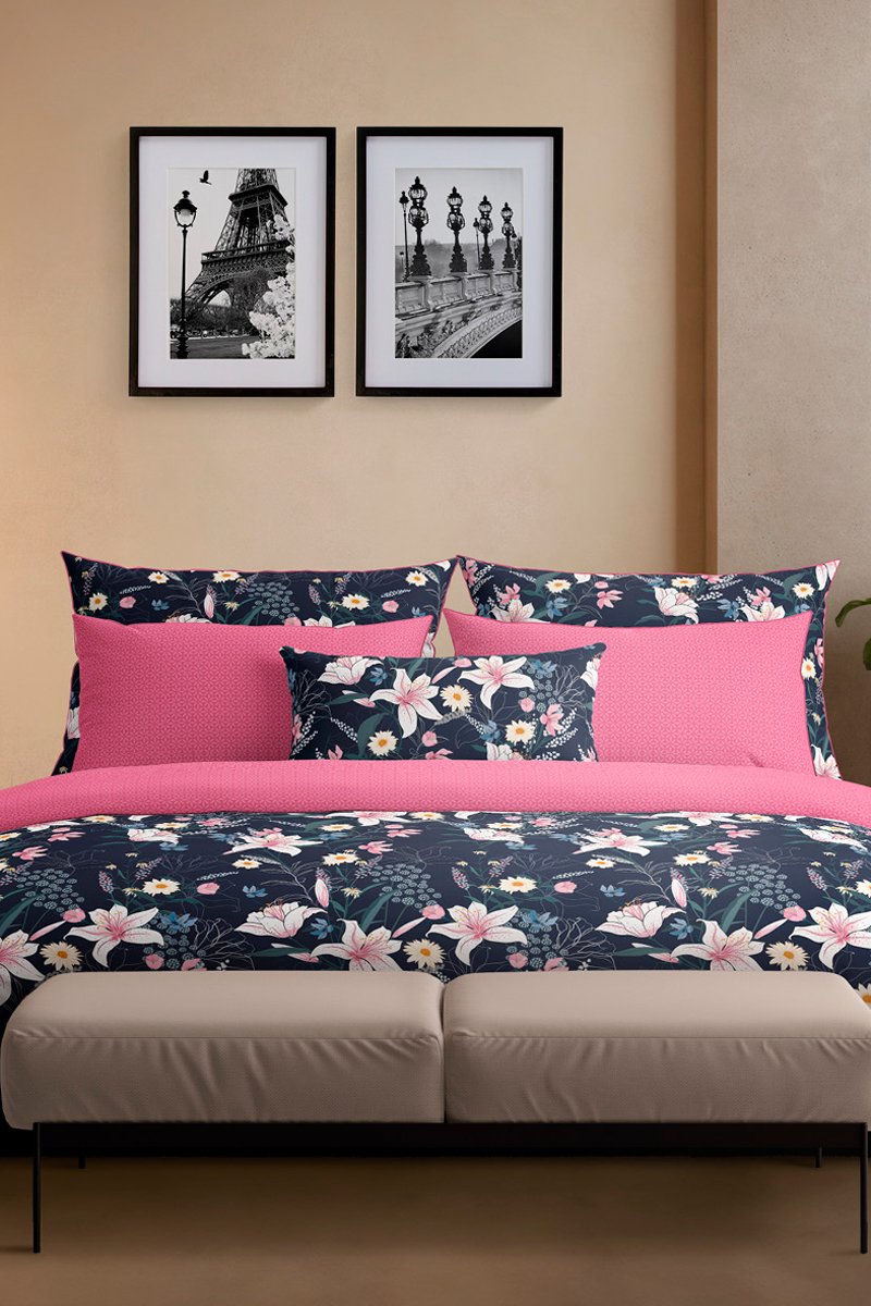 Conjunto de edredão em cetim de algodão 80 fios/cm² Fleur de minuit - Azul-escuro