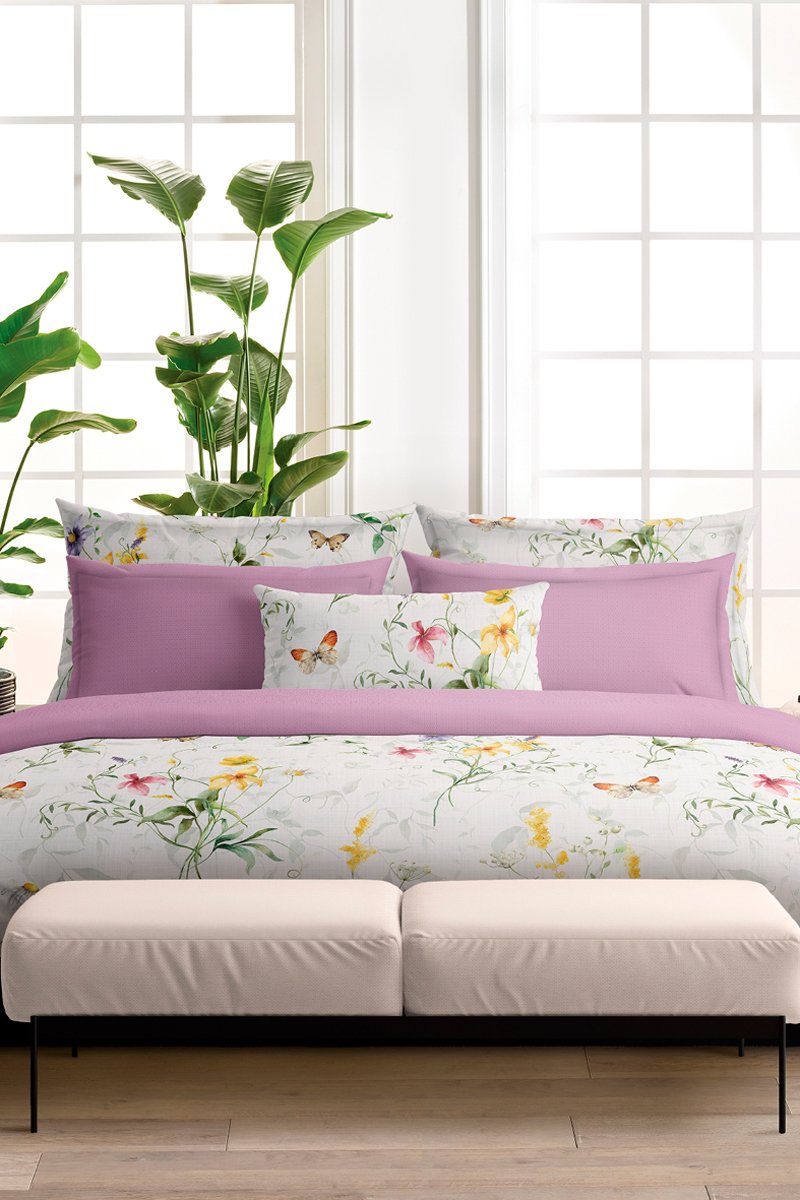Conjunto de edredão em cetim de algodão 80 fios/cm² Prairie de fleurs sauvages - Branco e violeta