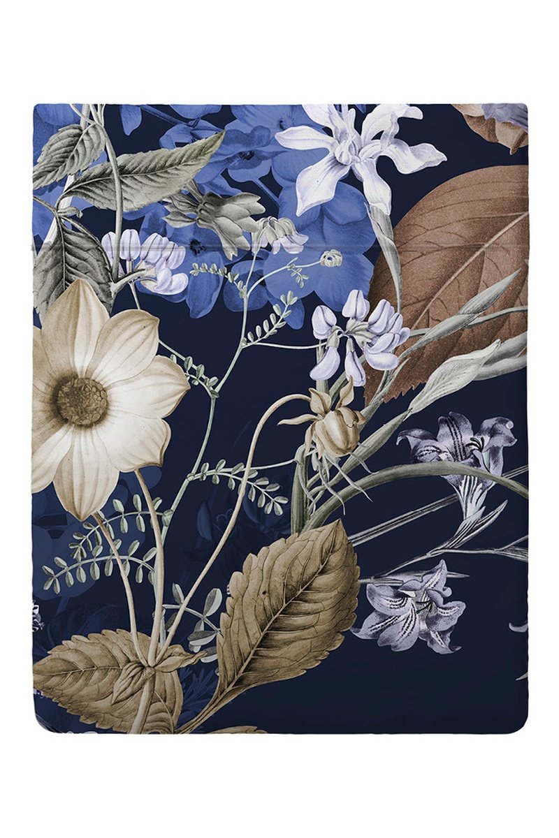 Lençol em cetim de algodão 80 fios/cm² Bouquet d'Hortensias - Azul,