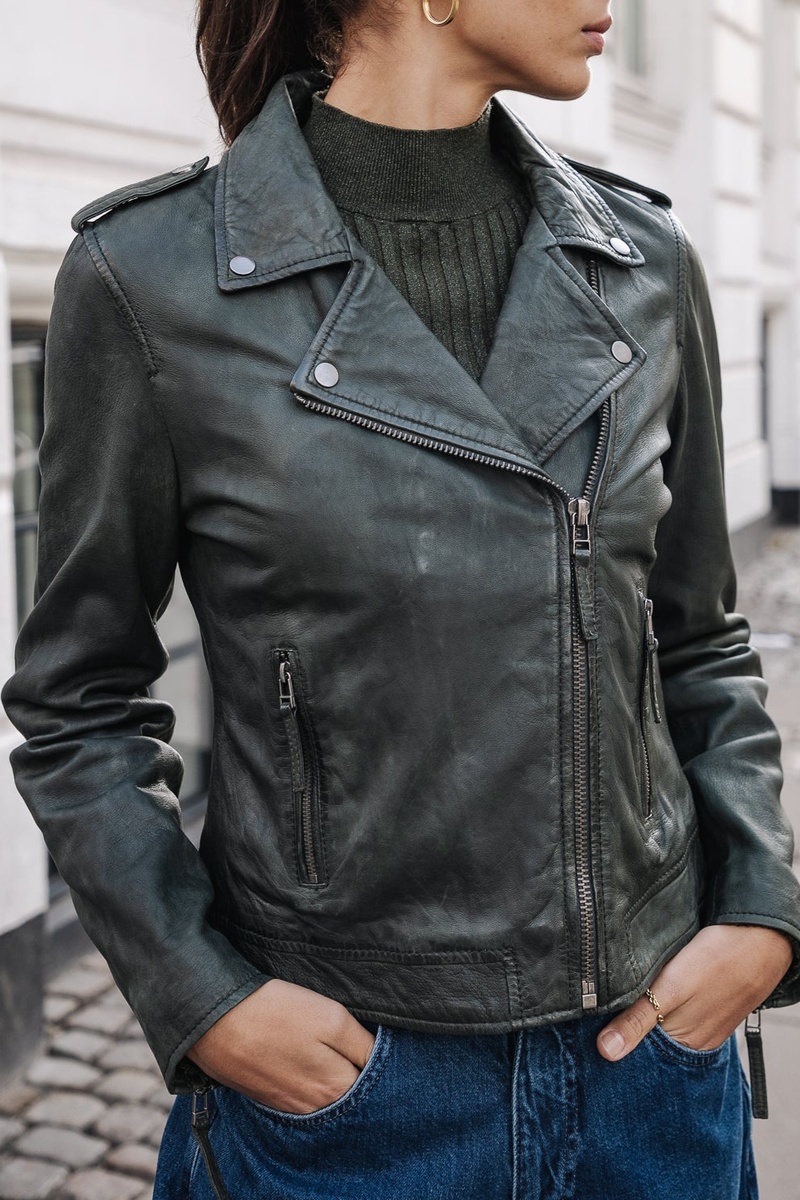 Blusão em couro - Verde-escuro