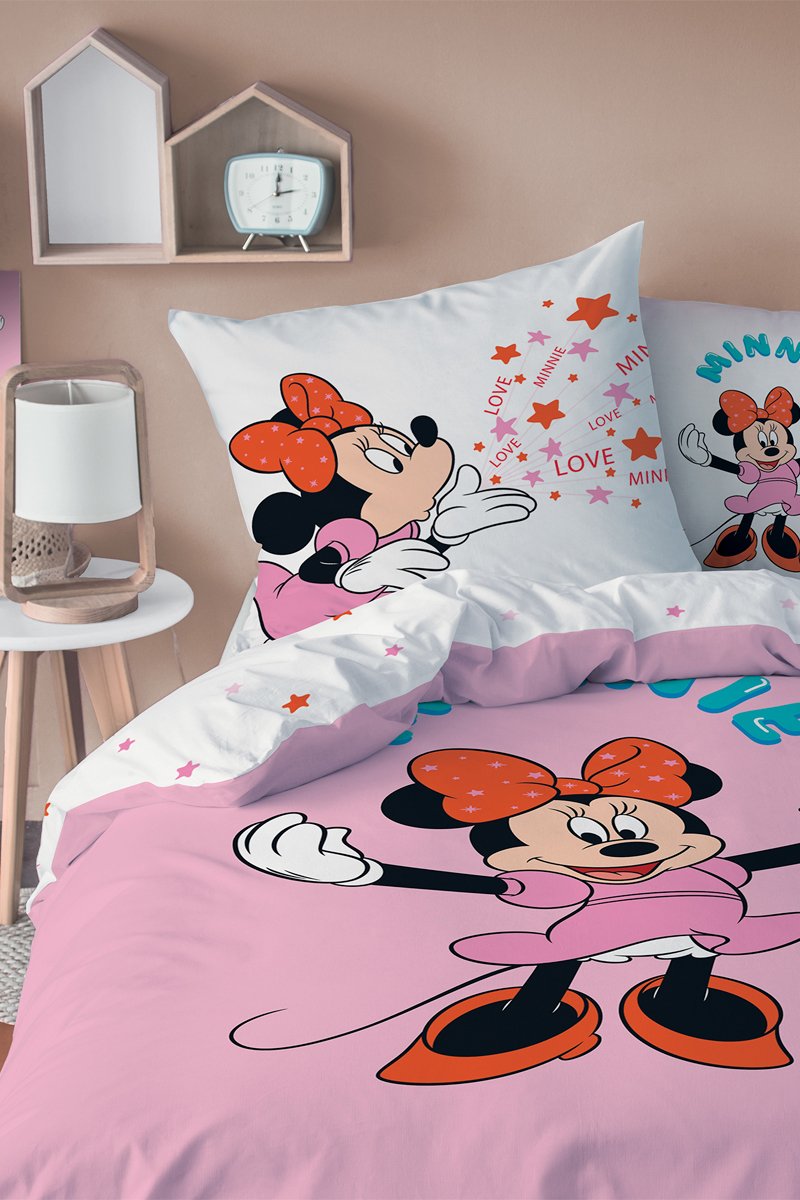 Conjunto de edredão Minnie Disney - Rosa e branco
