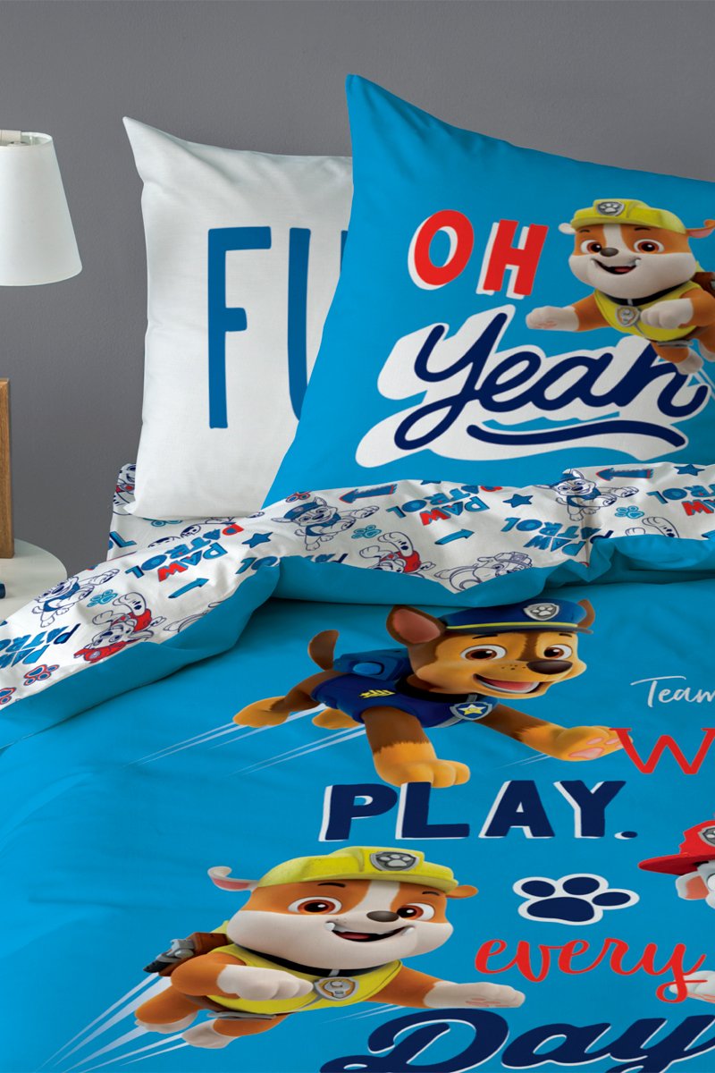 Conjunto de edredão Patrulha Pata - Azul e branco
