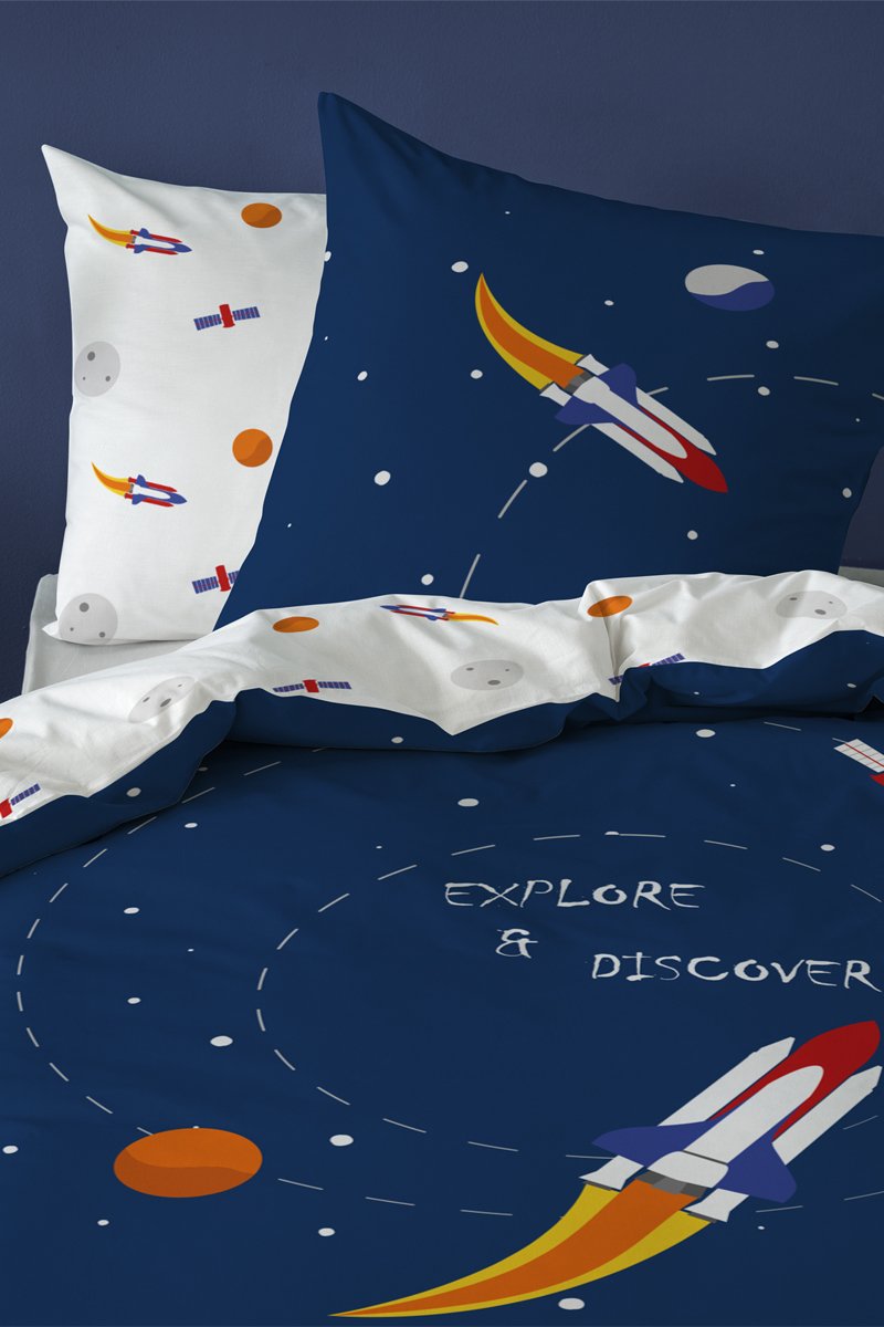 Conjunto de edredão Espaço 115 fios/cm² - Azul e branco