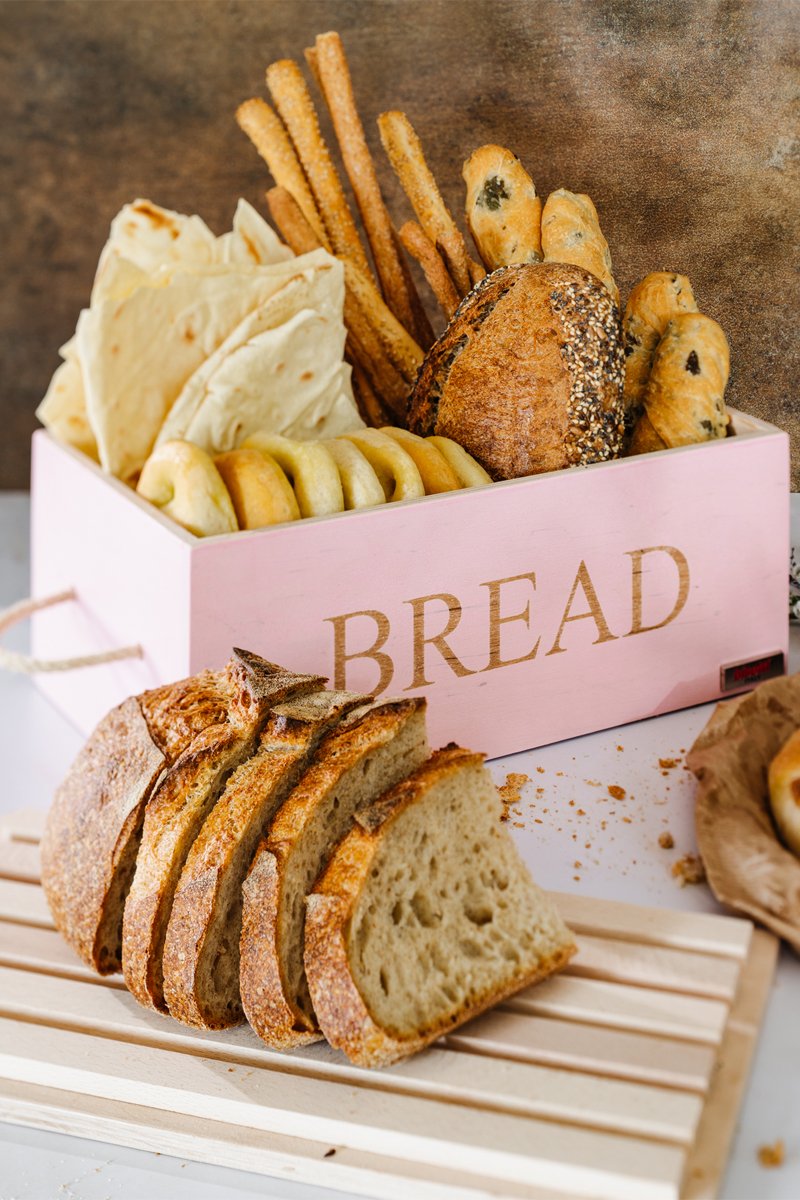 Caixa para pão e tábua de corte em faia StoneRose - 35 x 20 x 14 cm