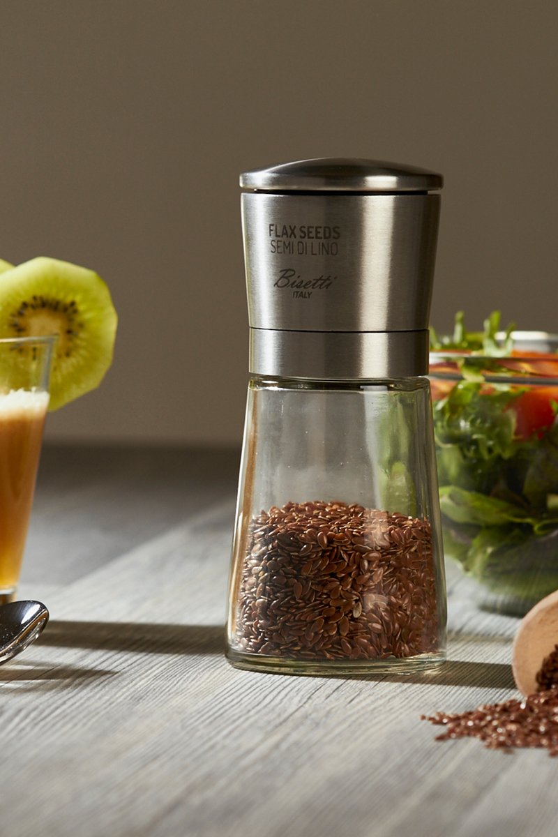 Moinho de sementes de linho em vidro e aço inoxidável.