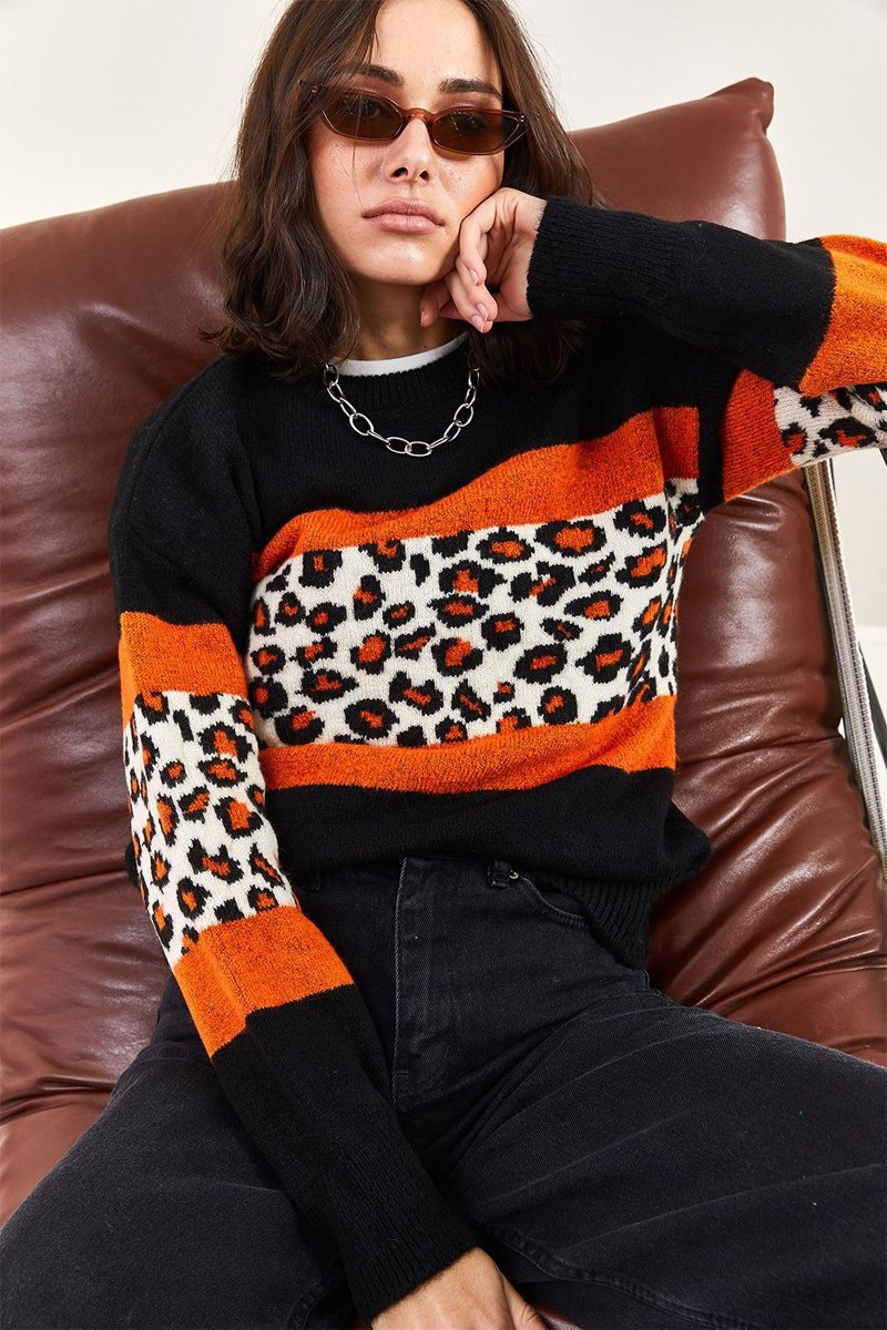 Estampado às riscas e leopardo.