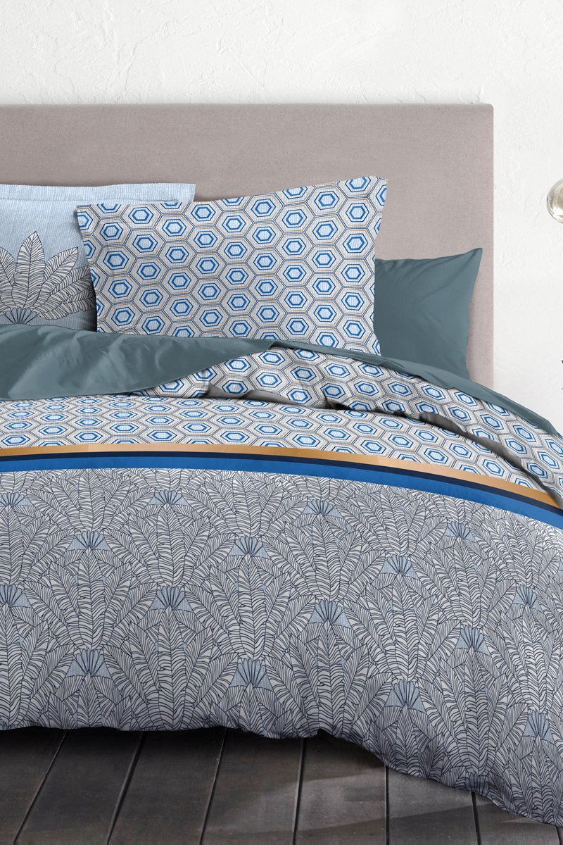 Conjunto de edredão em algodão - 57 fios/cm² Louxor - Azul e branco