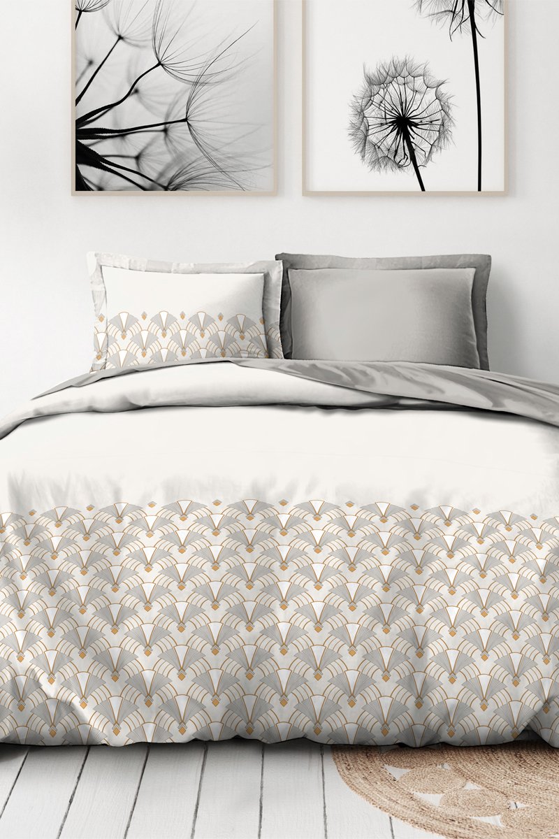 Conjunto de edredão em percal de algodão 80 fios/cm² L'élégante - Bege e cinzento