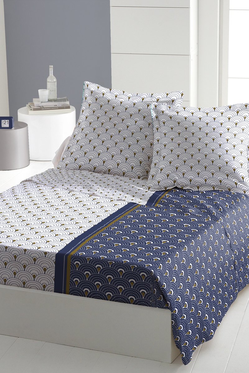 Conjunto de lençóis em algodão 57 fios/m² - Azul e branco