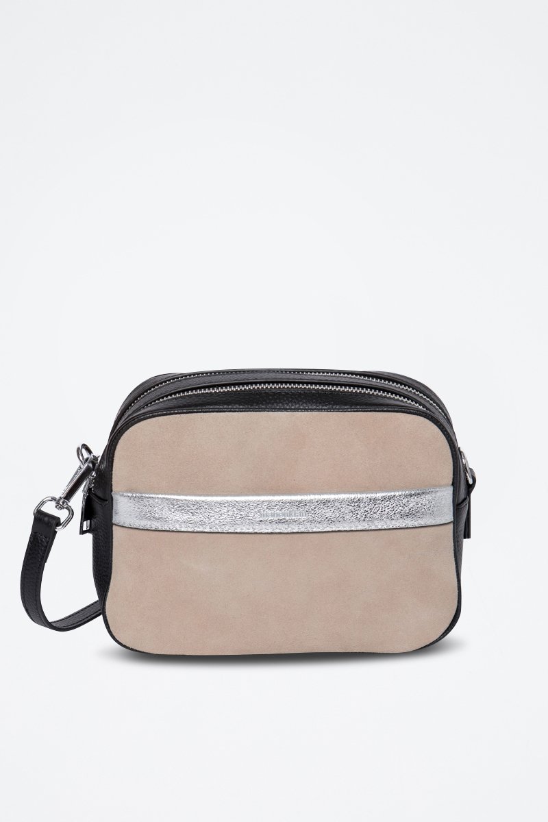 Mala a tiracolo em couro Rosine - Preto e bege