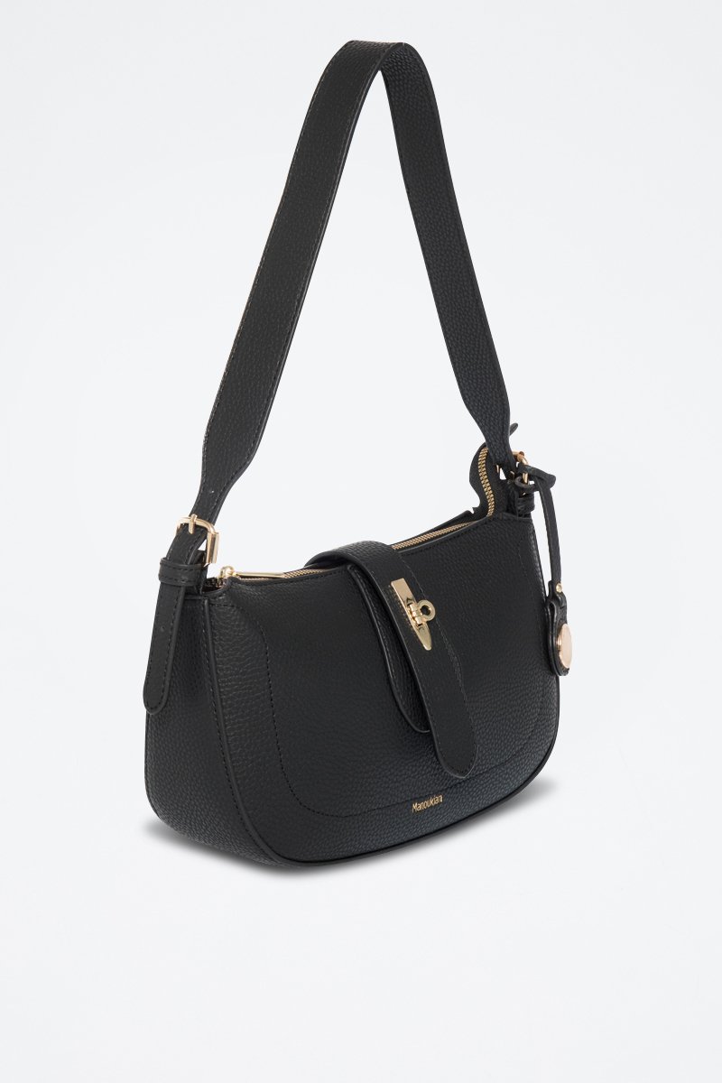 Logótipo em relevo e berloque metálico decorativo à frente.