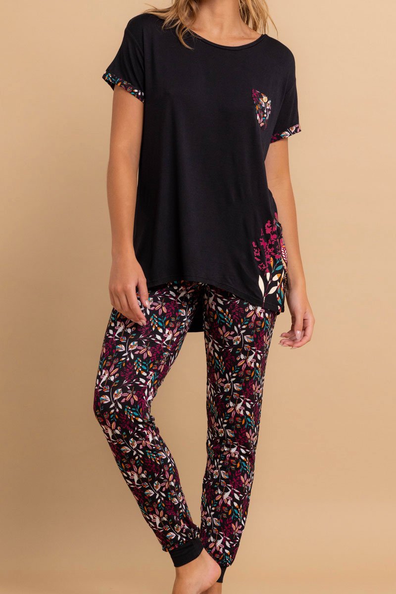 T-shirt de mangas curtas com aplicações e estampado de flores.